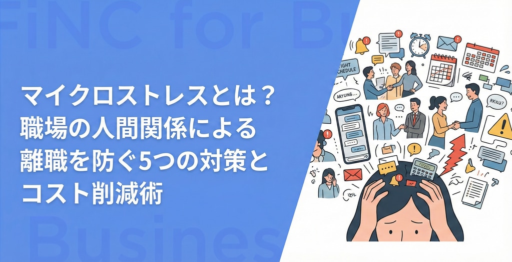 マイクロストレスとは?職場の人間関係による離職を防ぐ5つの対策とコスト削減術健康経営・優良法人認定ストレスチェック人事労務管理生産性(プレゼンティーイズム)メンタルヘルスケアコスト削減DX・SaaS活用採用・定着率2025年12月18日FiNCコンサルティングチーム