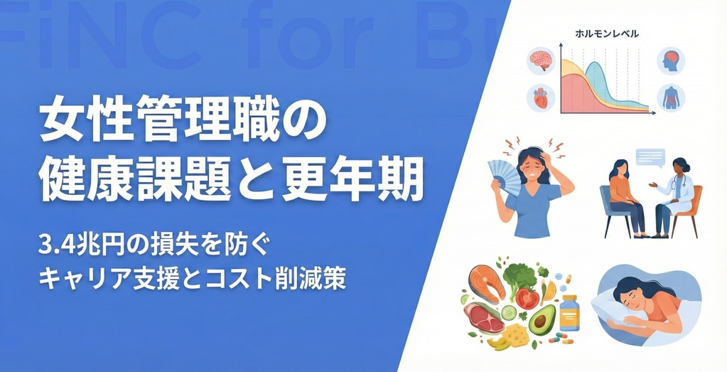 女性管理職の健康課題と更年期|3.4兆円の損失を防ぐキャリア支援とコスト削減策健康経営・優良法人認定健康管理システムコスト削減採用・定着率女性活躍・女性の健康2025年12月18日FiNCコンサルティングチーム