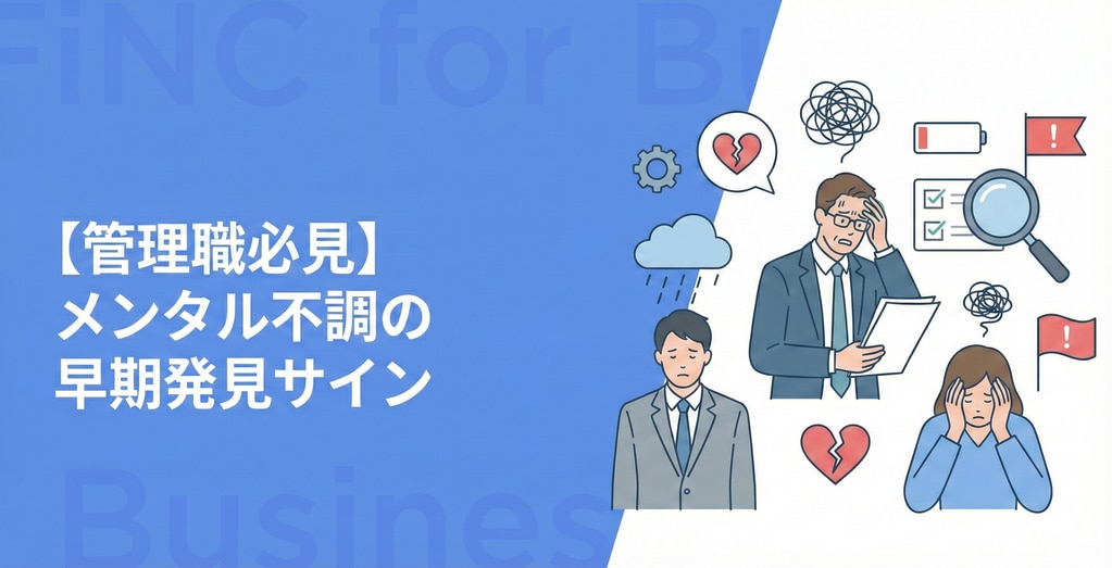 【管理職必見】メンタル不調の早期発見サイン|離職を防ぐ「管理一元化」の秘訣健康経営・優良法人認定健康管理システムストレスチェックメンタルヘルスケア採用・定着率2025年12月18日FiNCコンサルティングチーム