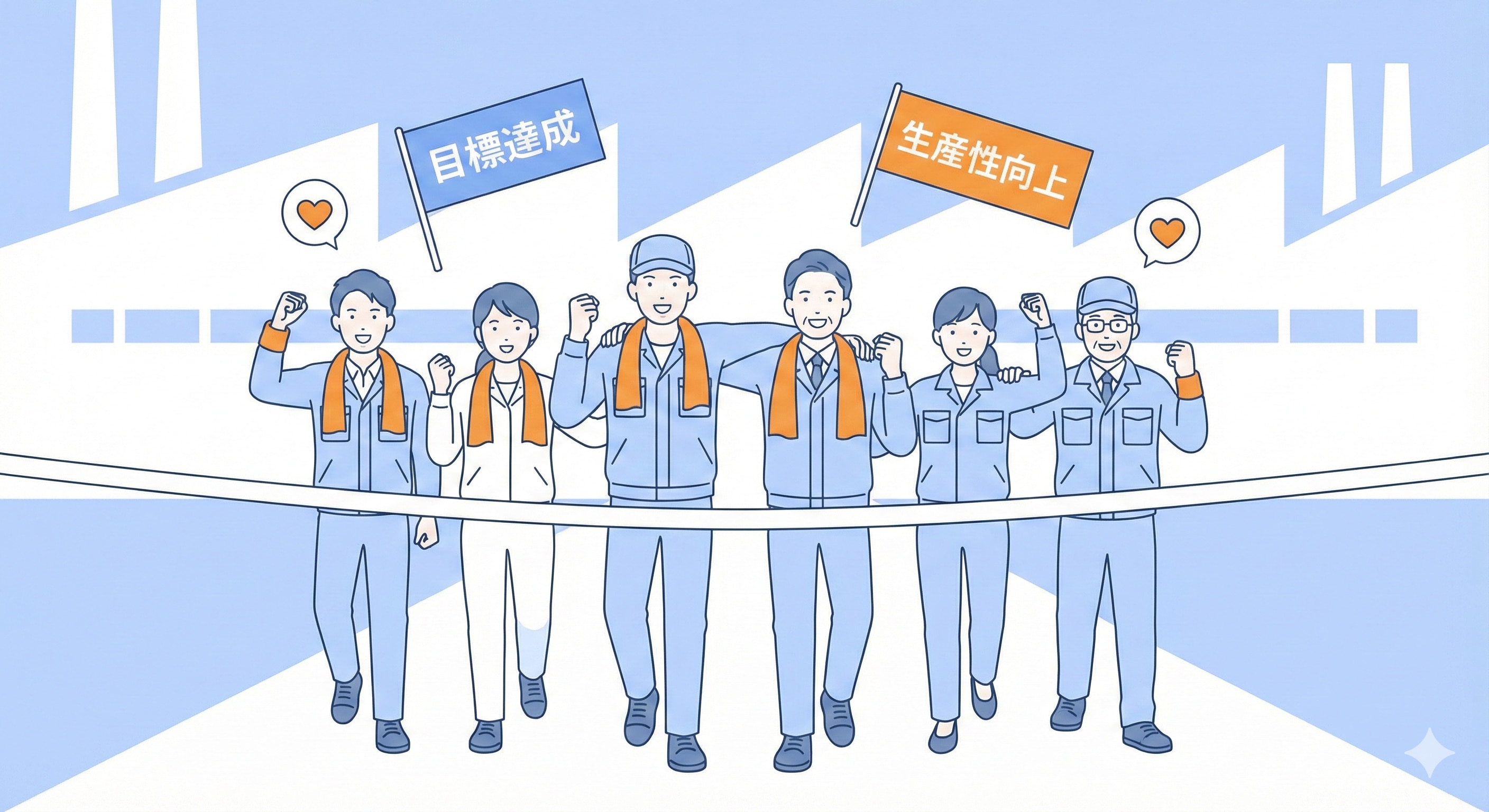 チーム対抗戦にすることで現場の連帯感が生まれ、楽しみながら運動習慣が定着(行動変容)。3年後には適正体重者が増加し(健康アウトカム)、結果として病欠によるライン停止時間が大幅に減少(KGI達成)しました。
