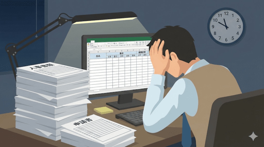 しかし、従業員数が300名を超えたあたりから、Excel管理は破綻します。