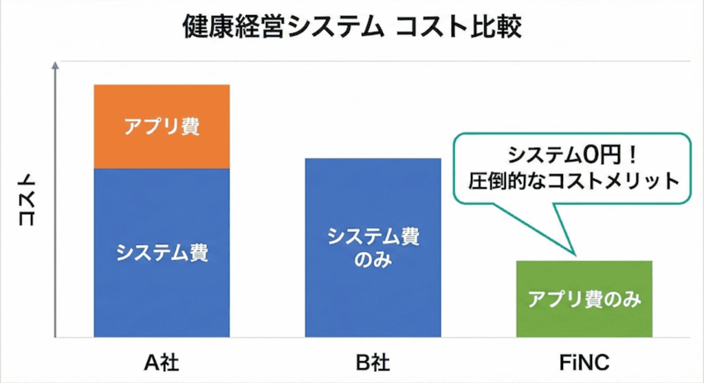 つまり、「システムにお金を払う」のではなく、「従業員の健康増進(アプリ)にお金を払い、管理効率化(システム)はタダで手に入れる」という構造です。