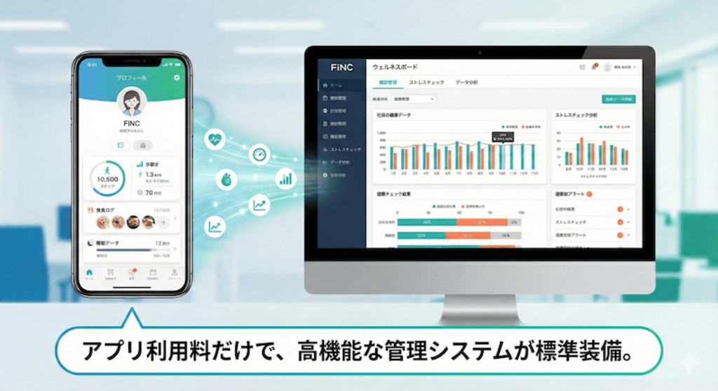FiNCの最大の特徴は、このアプリに連動した高機能な管理システム(FiNCウェルネスボード)が、アプリの利用料金内に含まれている点です。