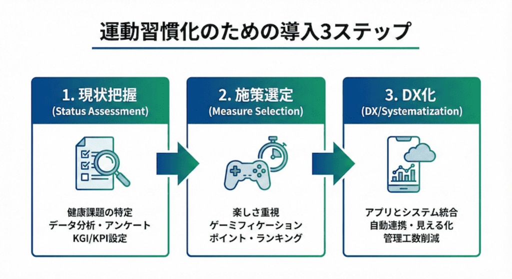 社員の運動習慣化は、強制力ではなく「自発的な行動」を引き出すことで達成されます。また、それを支える人事部の管理体制は、持続可能で効率的でなければなりません。