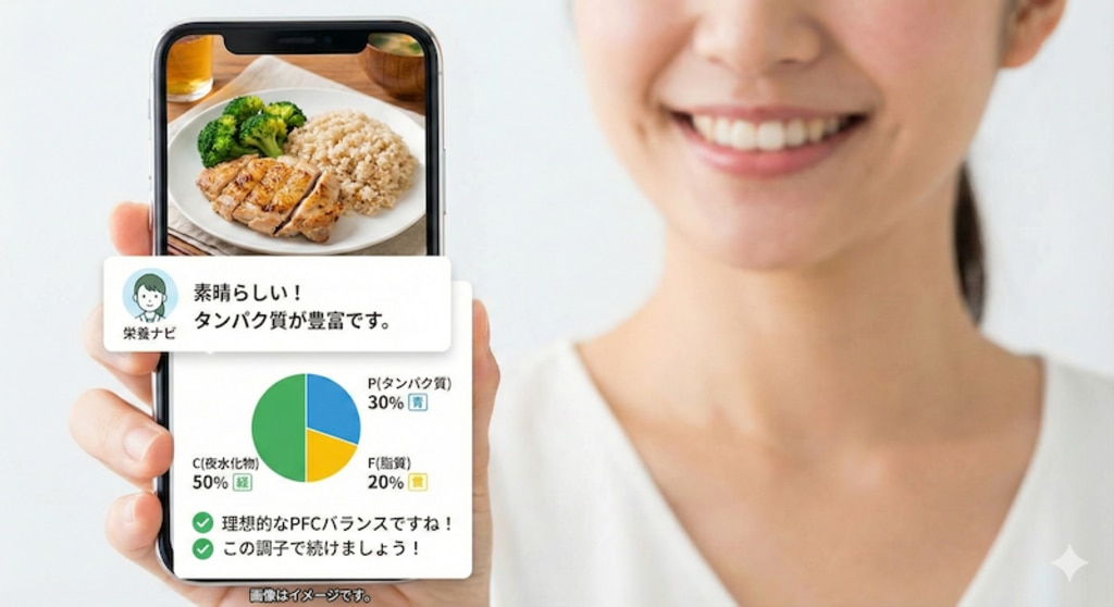 アプリであれば、本社の社員も、地方支店の社員も、在宅勤務中の社員も、場所を問わず等しくサポートを受けられます。 食事の写真を撮るだけでAIがカロリーや栄養素を計算し、「今日は野菜が足りていません」といったアドバイスをリアルタイムで提供可能です。