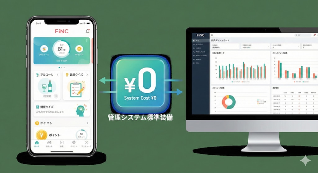 一般的なサービスでは、従業員用アプリと管理者用システムは別料金、もしくはオプション費用がかかるケースが大半です。しかし、FiNCは違います。