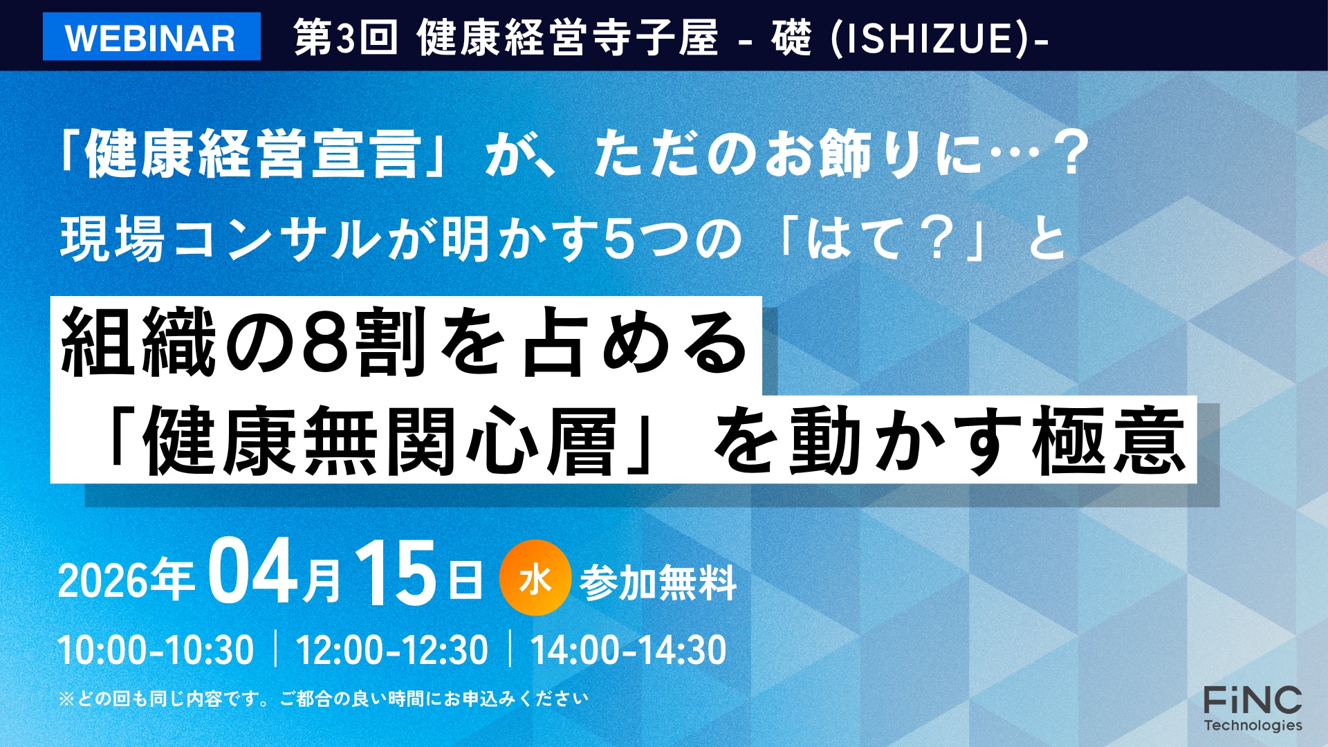 2026年4月15日(水) 10:00-10:30 / 12:00-12:30 / 14:00-14:30 |